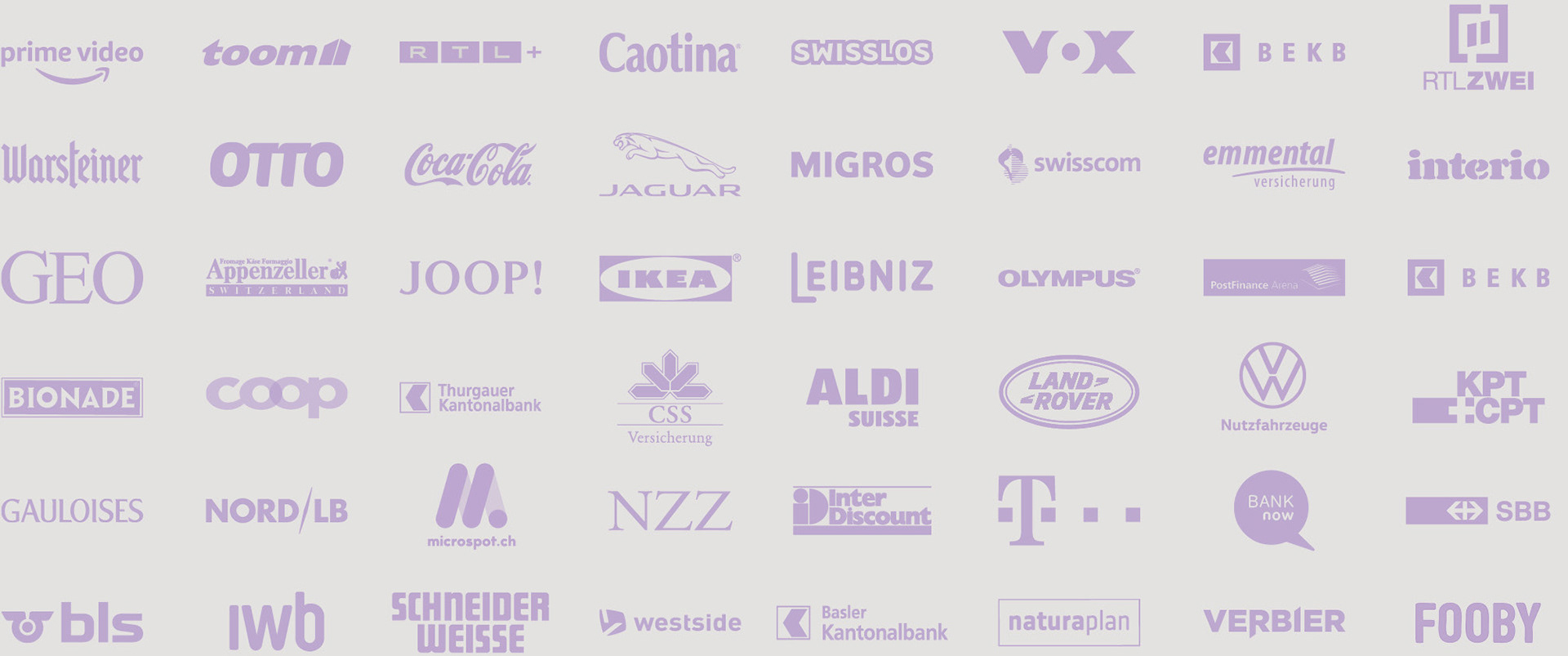 Rod, Wirz, KOMET, jim&jim, VICE/VIRTUE Switzerland, DDB, upljft, Ressourcenmangel, Polyconsult, 19:13, Trenders, numéro10, franz&rené, KARGO, Arillo, Morgans,...
